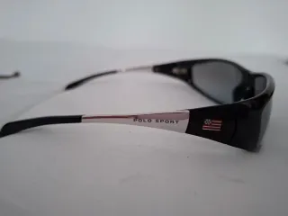 Gafas de sol Polo Sport con un diseño deportivo y moderno. - Montura en color negro. - Detalles en plata en las patillas. - Insignia de la bandera estadounidense en la patilla.