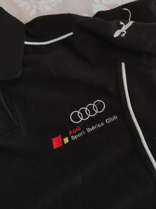 Polo negro del Audi Sport Ibérica Club. Presenta un diseño con detalles bordados. - Logo de Audi y texto Sport Ibérica Club bordado. - Detalle de bandera tricolor bordada. - Dibujo de lagarto bordado en la manga. Talla 38, tengo otro talla 40_42