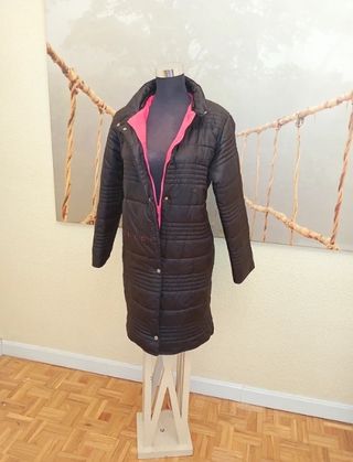 Abrigo plumífero de la marca ELLE Sport, nuevo Color negro y fucsia Muy cálido para el invierno: impermeable, guateado y forro polar rosa en toda la prenda. Bolsillos exteriores. Doble cierre cremallera y botones. Talla etiqueta Elle Sport 16 que equivale a talla L europea Medidas: Largo: 96 cm Largo de mangas: 61 cm Ancho de hombros 41 cm Ancho de axilas: 55 cm Contorno máximo cintura: 110 cm Envios rápidos 24/48H Descuentos por compra de lotes