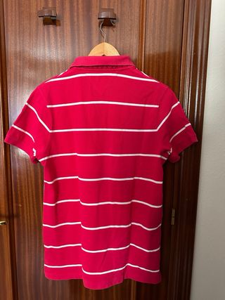 Polo de manga corta color rosa fucsia con un diseño a rayas. Se ha usado un par de veces y esta impecable como se puede ver en las fotos.