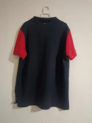 Polo de manga corta con diseño moderno, es xxl pero es pequeño puede ser xl europeo, utilizado una vez - Cuerpo principal en color azul marino. - Mangas en contraste de color rojo. - Logo de Tommy Hilfiger y New York estampado en blanco en el pecho.