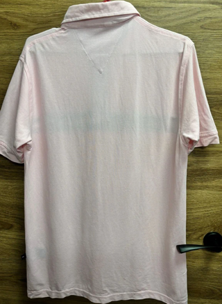 Polo de manga corta de la marca Tommy Hilfiger. - Color rosa con detalle de tres tiras horizontales en pecho. - Logo de la marca en la parte superior derecha. - Cuello tipo polo con botones.