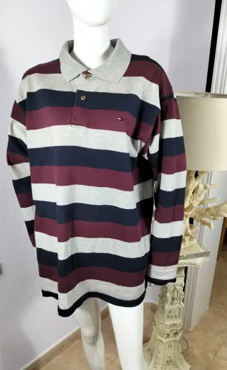 Polo de manga larga de Tommy Hilfiger con un diseño de rayas clásico. ✅ Polo de manga larga Tommy Hilfiger a rayas en perfecto estado y con un fit ideal al mejor precio! 📏Talla L📏 📐Medidas en las fotos📐 🧽Ropa lavada y planchada, sin malos olores🧽 🙋🏻Cualquier duda os atenderemos🙋🏻 ⏰Estaremos con vosotros de 9am-9pm⏰ - Diseño de rayas horizontales. - Cuello tipo polo con botones. - Logo de la marca en el pecho.