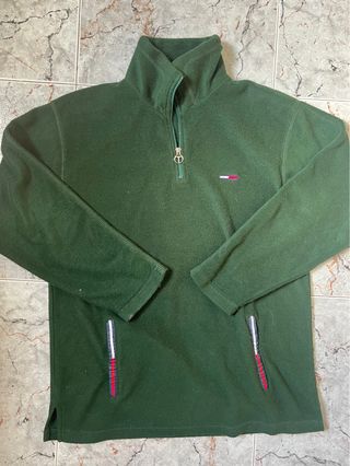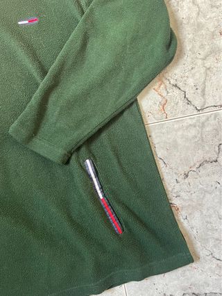 Forro polar vintage de Tommy Hilfiger en un llamativo color verde bosque. Presenta un diseño de 1/4 de cremallera y un pequeño logo de la marca en el pecho. - Detalle de logo en el pecho. - Bolsillos frontales con detalle de bandera. - Cuello alto.