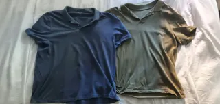 Dos polos de manga corta Talla L - Cuello con detalles de rayas. Uno x 8 Los 2 x 15e