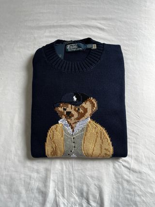 Jersey de punto azul marino con un diseño de oso de Polo Ralph Lauren. - Detalle de oso bordado en la parte delantera. - Cuello redondo y manga larga. - Puños y bajo acanalados. unisex