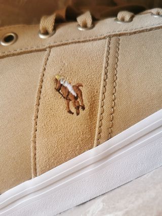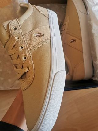 Zapatillas Polo Ralph Lauren Premium. Valen 130€. Originales compradas en la tienda oficial de Polo Ralph Lauren. Color beige, muy elegantes. Combina con todo. Perfecto para el día a día, trabajo, fiestas, reuniones, quedadas, citas formales... Ideal para regalar o estrenar cumpleaños, fiestas, vacaciones,viajes... Talla 39 40 Se puede quedar y probar sin compromiso