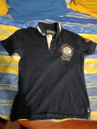 Polo de manga corta de la marca Napapijri. - Cuello tipo polo con botones. - Detalle de logo y diseño en el pecho. - Parche con bandera en la manga.