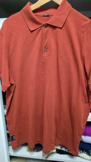 Polo de manga corta en color rojo, de tacto muy agradable. Hecho en España. Está nuevo. Pone talla SG pero es más bien una M. 48 cm de ancho de hombro a hombro. Camiseta