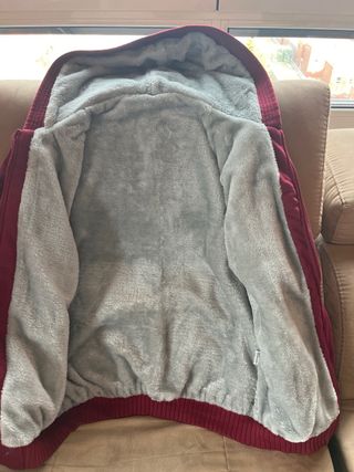 Chaqueta con cremallera frontal completa y un suave forro interior de borreguito. - Diseño con capucha. - Bolsillos laterales. - Puños y cintura elásticos.