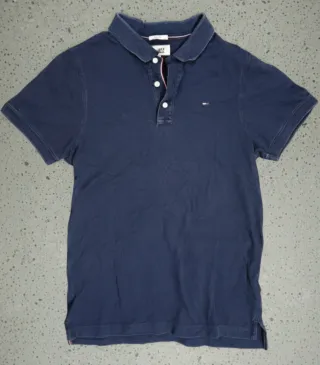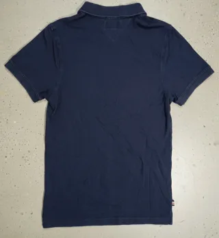 Polo de manga corta en color azul marino. Se ha usado poco. - Cuello tipo polo con detalles de rayas en contraste. - Logo bordado en el pecho. - Puños con detalles de rayas.