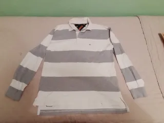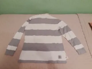 Polo de manga larga con un diseño de rayas clásico. - Gris y blanco. - Cuello tipo polo. - Pequeño logo bordado en el pecho. - Puños ajustados en las mangas. - Algodón 100%.