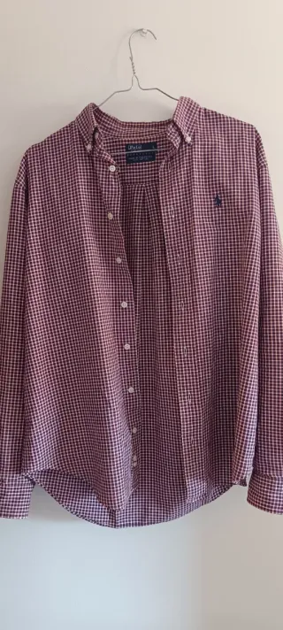 Se vende camisa Polo Ralph Lauren con estampado de cuadros. Totalmente original. Tiene un pequeño desperfecto en una de las mangas (tal como se ve en una foto). Usada muy poco. Talla L. 100% Algodón.