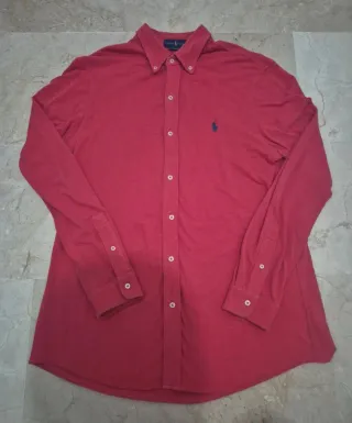 Camisa de manga larga de tela tipo polo. - Cuello camisero. - Cierre de botones. - Logo bordado en el pecho. - Esta en muy buen estado.