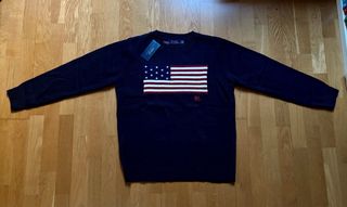 Jersey de punto con diseño de la bandera de Estados Unidos. - Cuello redondo. - Manga larga. - Tejido de punto. - Diseño de la bandera americana. - Marca Polo Ralph Lauren. - Talla L. - Nuevo a estrenar. - Etiqueta incluida.