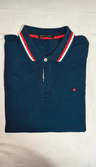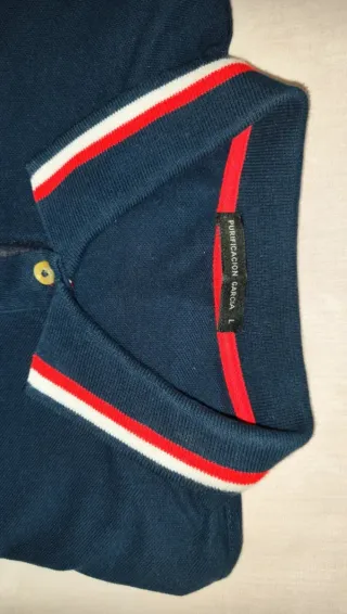 Polo de manga corta de la marca Purificación García. - Cuello tipo polo con detalles de rayas rojas y blancas. - Cierre de botones. - Pequeño detalle de un cuadrado rojo en el pecho. - Talla L (ver fotos en las que aparece la prenda con las medidas antes de comprarla por si se ajusta a su tallaje). - No tiene marcas de desgaste evidente graves, está prácticamente nueva (ver las fotos).