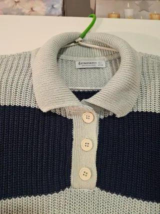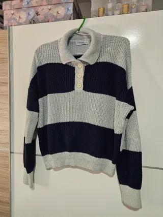 Jersey Stradivarius Talla L Rayas Azul Marino Gris