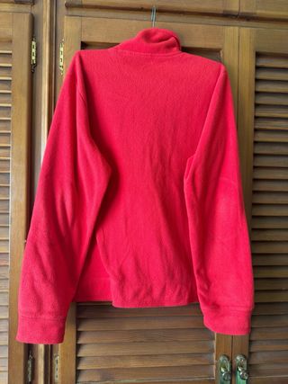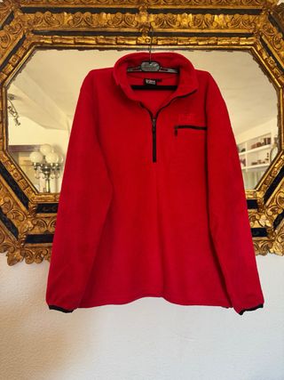 Sudadera polar de color rojo, ideal para mantener el calor. - Material polar suave. - Cierre de cremallera parcial en el cuello. - Bolsillo frontal con cremallera.