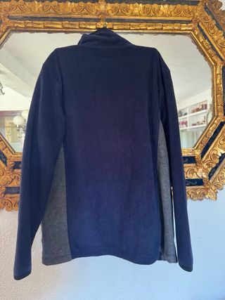 Forro polar con el logo de los New England Patriots. - Diseño bicolor en azul marino y gris. - Cremallera frontal completa. - Cuello alto. - Precio negociable.