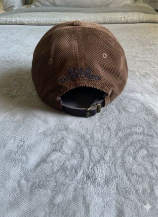 Gorra de pana con el icónico logo del jinete bordado. - Diseño clásico de seis paneles. - Visera curva. - Cierre ajustable en la parte trasera.