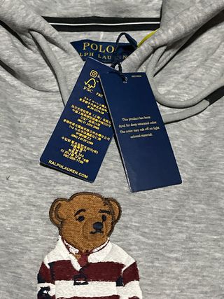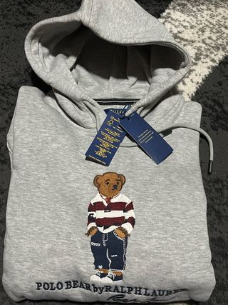 Sudadera con el icónico oso de Polo Ralph Lauren. - Diseño unisex en color gris. - Estampado del oso con su característico jersey y pantalones. - Logo bordado de Polo Bear by Ralph Lauren en la parte inferior.