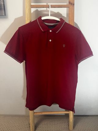 Polo de manga corta en color burdeos, con detalles en el cuello y puños. - Logo de la marca bordado en el pecho. - Cierre de dos botones. - Tejido de algodón.