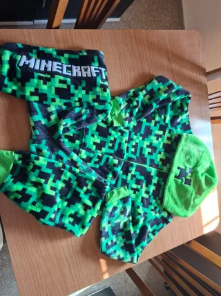 Mono polar de Minecraft, muy calentito y cómodo. - Diseño pixelado verde y negro. - Estampado de Minecraft en la parte superior.