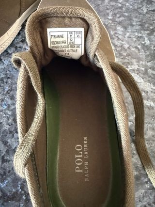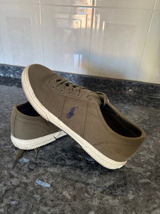 Zapatos casuales de lona con el icónico logo del jinete. Se han usado muy pocas veces - Color verde olivo. - Diseño de zapatilla baja. - Cordones para ajuste. - Suela de goma blanca.