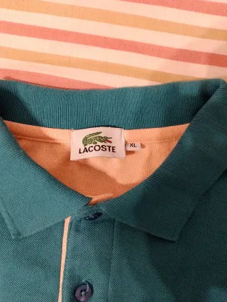 Polo clásico de la marca Lacoste en color beige. Una prenda versátil y cómoda. - Logo del cocodrilo bordado en el pecho. - Cuello tipo polo con botones. - En perfecto estado