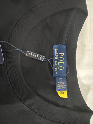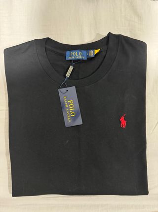 Camiseta clásica de Polo Ralph Lauren en color negro con el icónico logo del jinete bordado en rojo. Pone talla L pero talla como una S convencional - Cuello redondo. - Manga corta. - Corte regular.