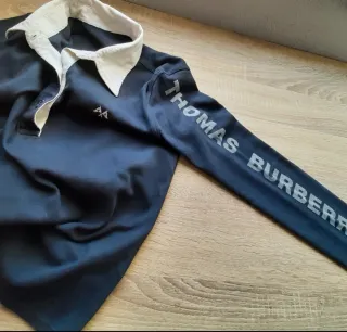 Polo de manga larga Thomas Burberry en color azul marino. Presenta un cuello blanco y detalles de logo en la manga y pecho. - Cuello camisero blanco. - Logo de la marca en la manga y en el pecho