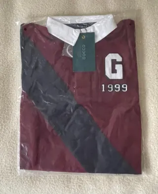 Polo de niño de la marca Gocco, sin estrenar. - Color granate. - Talla 9-10 - Diseño con franja diagonal en contraste. - Cuello blanco. - Detalle de letra 'G' y año '1999' bordados en el pecho.