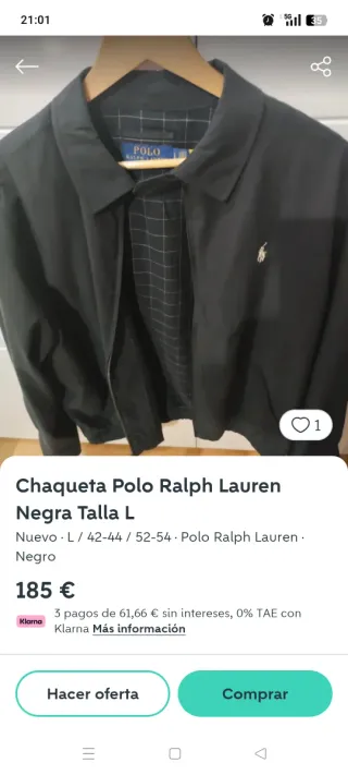 Chaqueta Polo Ralph Lauren Negra Talla M