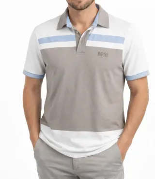 Polo de manga corta para hombre de la marca BOSS. Presenta un diseño clásico con cuello y puños de canalé con detalles en blanco. - Cuello tipo polo. - Logo de la marca bordado en el pecho.