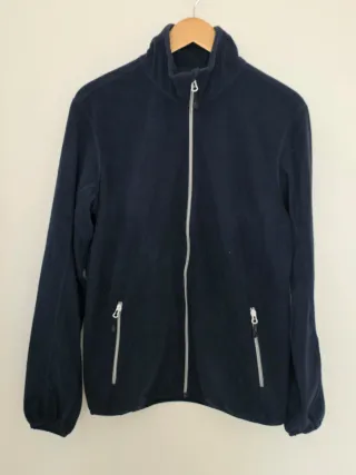 Forro polar de color azul en talla M. comprado para trabajar. -Refuerzos en codos y hombros - Material de forro polar. - Cierre de cremallera. - Bolsillos con cremallera.