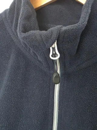 Forro polar Quechua con capucha y cremallera completa. Posee dos bolsillos exteriores con cremallera y dos interiores con rejilla. Material transpirable en zona lateral y axilar. En perfecto estado.