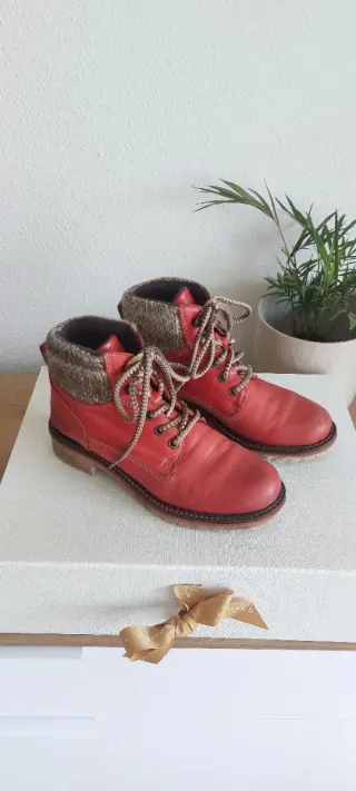 📝 Botas de piel de estilo casual con un diseño moderno y cómodo. Cuello de tejido de punto. Cierre de cordones, suela de goma resistente e interior térmico 🎨 Color rojo y marrón 🏷️ En perfecto estado, muy poco uso 🚫No hagas ofertas ni lotes si no estás seguro de comprar ¡Es una falta de respeto y de tiempo! Serás bloquead@ 🛍️ DESCUENTO EN LOTES 🤩 MÁS ARTÍCULOS EN MI PERFIL ⚠️ PRENDAS DESINFECTADAS 🙌 NO DUDES EN HACER UNA OFERTA 📦 ENVÍOS EN 24HRS ❓ CUALQUIER DUDA CONSÚLTAME 🧦👕👖👗👛👒👙🧣🧤👝👠🕶️