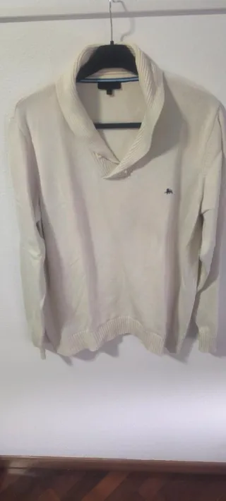 Jersey de punto grueso para hombre, ideal para el frío. - Talla XXL. - Color beige. - Cuello tipo shawl con botones. - Logo discreto en el pecho. - Puños y bajo acanalados. - Se hacen lotes de todo lo de mi perfil.