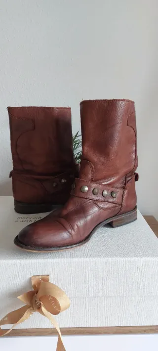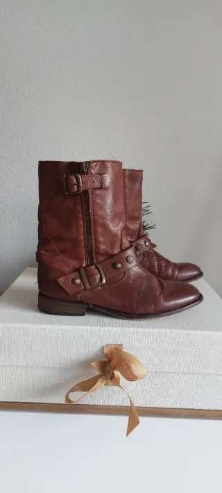 📝 Botas de cuero 100% piel original de estilo motero con detalles metálicos. Cierre de cremallera y hebillas ajustables. Diseño con tachuelas 🎨 Color marrón 🏷️ Usadas, con marcas de uso 🚫No hagas ofertas ni lotes si no estás seguro de comprar ¡Es una falta de respeto y de tiempo! Serás bloquead@ 🛍️ DESCUENTO EN LOTES 🤩 MÁS ARTÍCULOS EN MI PERFIL ⚠️ PRENDAS DESINFECTADAS 🙌 NO DUDES EN HACER UNA OFERTA 📦 ENVÍOS EN 24HRS ❓ CUALQUIER DUDA CONSÚLTAME 🧦👕👖👗👛👒👙🧣🧤👝👠🕶️