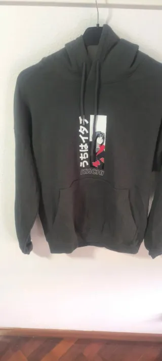 Sudadera con estampado de Naruto. - Las medidas se ven en foto pone xs pero me parece mínimo M . - Diseño frontal con personaje Itachi y texto. - Capucha con cordones. - Bolsillo tipo canguro. - Se hacen lotes de todo lo de mi perfil.