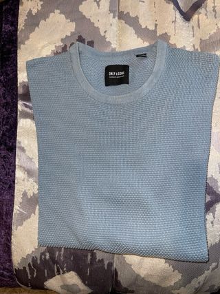 Jersey de punto para hombre de la marca ONLY & SONS. - Color azul. - Tejido con textura. - Cuello redondo. * Tengo mas,hago precio llevando varios
