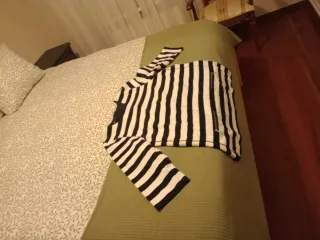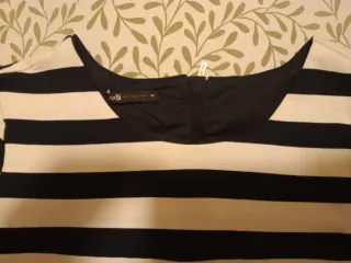 Camiseta de manga larga con un diseño de rayas verticales en blanco y azul marino. Ideal para la temporada de primavera. - Diseño de rayas. - Manga tres cuartos.