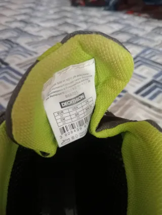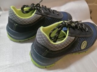 Zapatos de seguridad no 37, con refuerzo selanteros, traseros y suea reforzada. Color nefro y verde "fosforito". Usados muy pocas veces, por lo que estan en bastante buen estado, sin deformación o desgaste alguno.