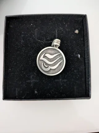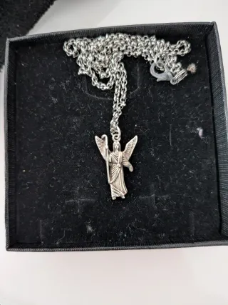Colgante artesanal con la figura del Arcángel Rafael. - Diseño detallado del arcángel Rafael de Plata. - Cadena. - Cierre de mosquetón. Encargado para regalo a motorista debido a la creencia que es el protector de los motoristas.