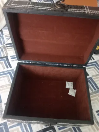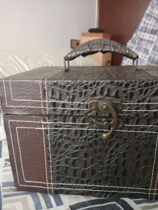 Elegante baúl joyero con un diseño texturizado que imita la piel de cocodrilo. Ideal para organizar tus accesorios. - Acabado en piel sintética. - Detalle de costuras blancas. - Cierre metálico decorativo. - Asa superior para facilitar su transporte.