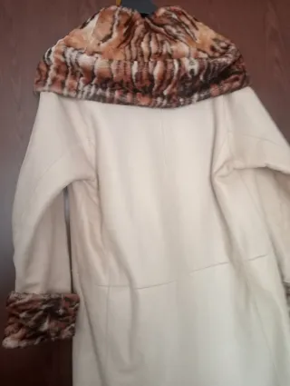 Abrigo estilo duffle coat con forro de borreguillo. - Cierre con botones y lazada. (tipo trenka). - Bolsillos delanteros. - Puños y bolsillos con detalle de borreguillo. - Ha sido usado solo 2 veces, - Por aumento de talla no me queda justo. ##abrigo#chaqueton#trenka#