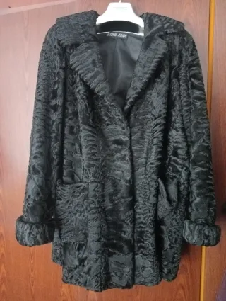 Elegante chaquetón de astracán de la marca Antonio Jurado. - Color negro. - Diseño con cuello - Bolsillos delanteros - Puños y bajo con detalle de pelo.
