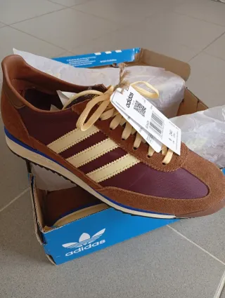 Zapatillas deportivas con un diseño clásico y atemporal. Nuevas a estrenar por error al comprar en el tallaje SL 72 - Estilo adidas - Combinación de colores marrón y beige. - Detalles de las icónicas tres rayas.