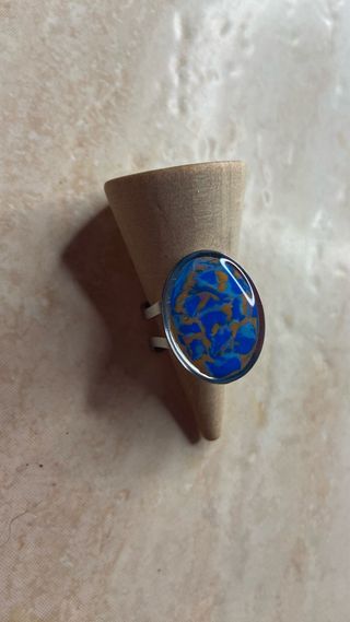 Anillo con un diseño estampado único y llamativo. - Diseño ovalado. - Montura plateada. De arcilla polimerica. Hecho a mano.