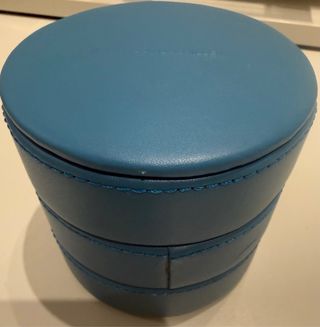 Elegante joyero de la marca Salvador Bachiller. Con un pequeño desperfecto en el lateral - Diseño circular. - Color azul.